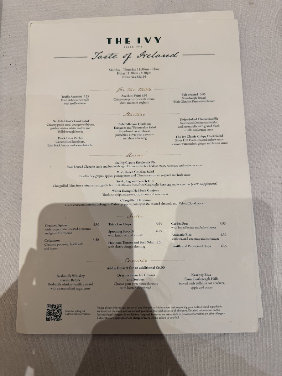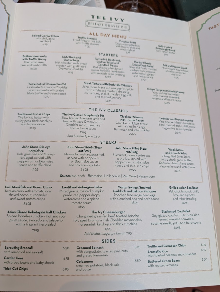 The Ivy Belfast Brasserie Menu